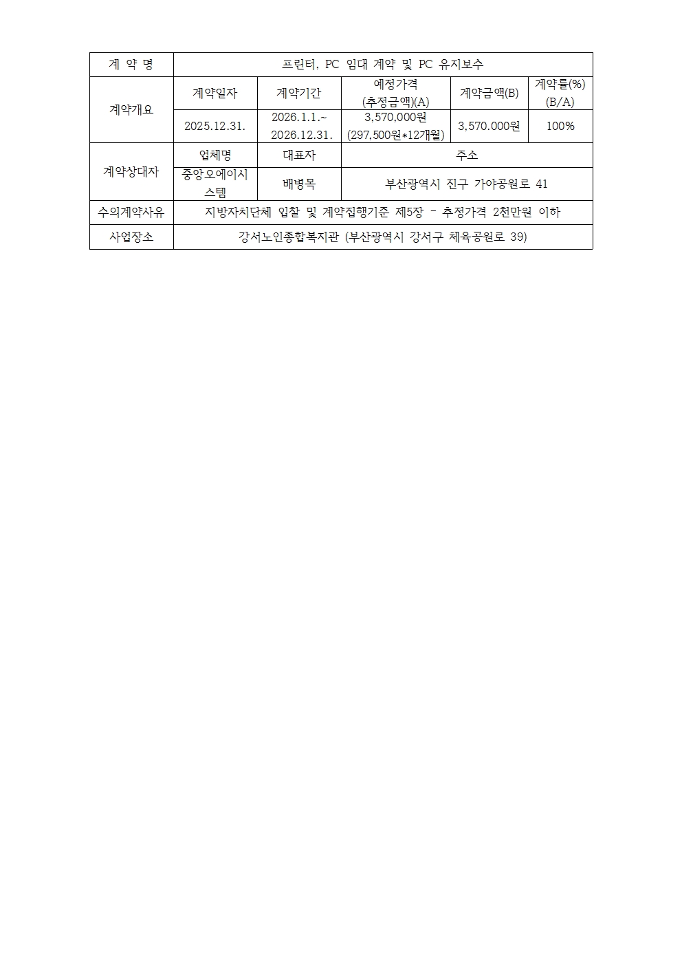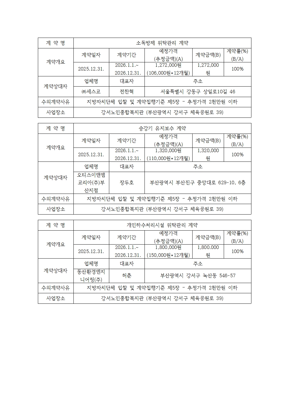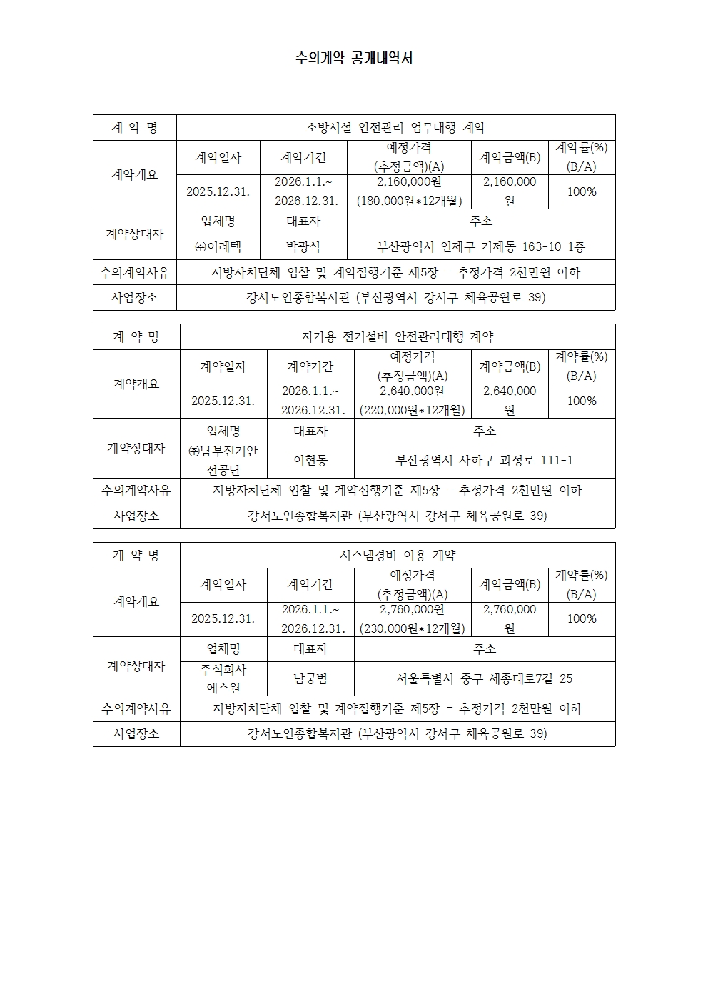 2026년 강서노인종합복지관 수의계약 내역 공개