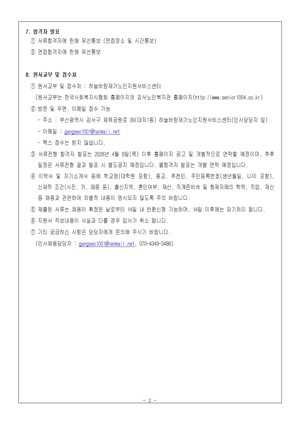 [채용-긴급 4차] 하늘바람재가노인지원서비스센터 2026년 사회복지사(대체인력) 공개 채용